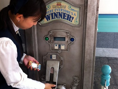 ファストパス対応のアトラクション付近にある「自動発券機」に入場済みパスポートを入れるとファストパスチケットが出てきます。